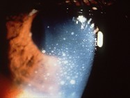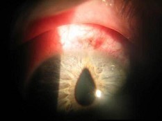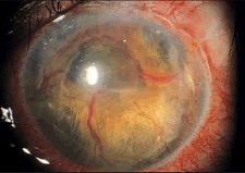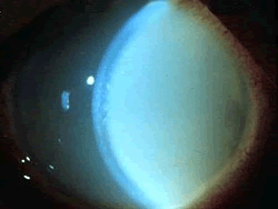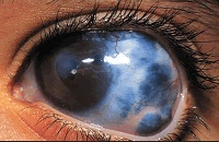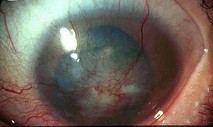 溃疡多开始于角膜周边,缓慢向中心潜行,进行缘不整齐,呈灰白色,考虑是()