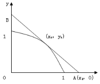 在抛物线y=1-x2(0< x< 1)上求一点使过该点的切线与两坐标轴围成的三角形面积最小(参见下图)